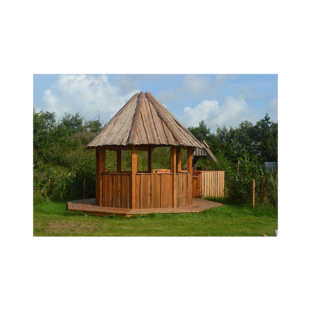 Vores smukke 8-kantet pavillon vil passe perfekt i de fleste skønne haver. Vorbasse Campingplads fik lavet en sekskantet overdækning af deres bålplads.